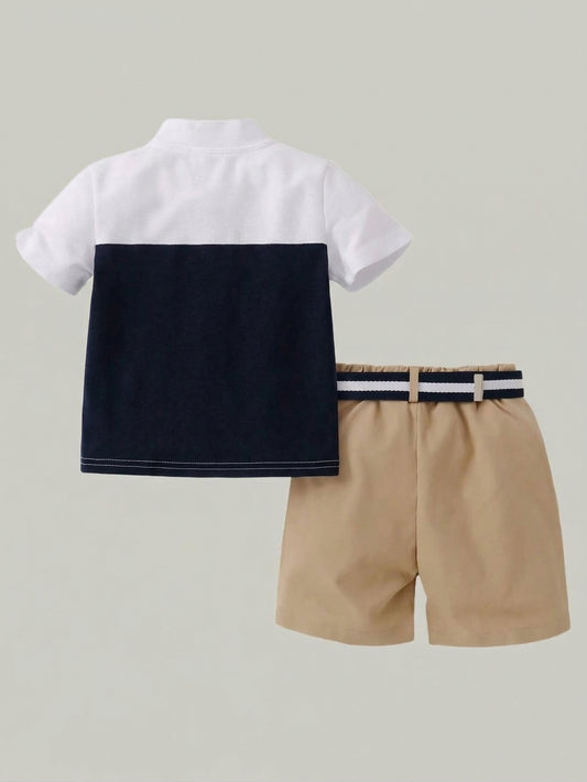 طقم ولادي أنيق مكون من قطعتين مطرز لركوب الخيل للربيع والصيف "بدون حزام"
