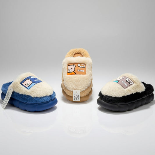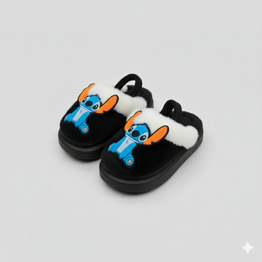 نعال خياطة للأطفال: فرو صناعي دافئ، نعل مانع للانزلاق، حزام كعب