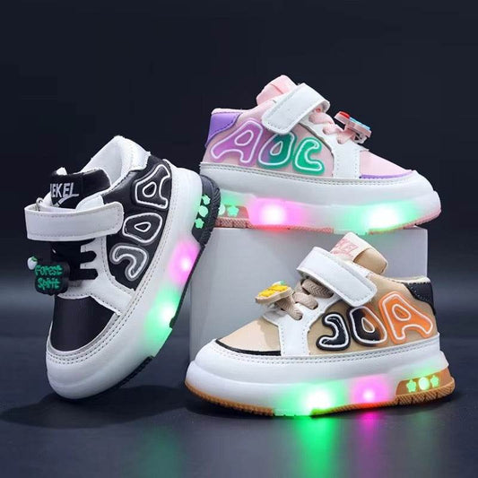 "أحذية مشي مضيئة قابلة للتنفس للأطفال برسوم كرتونية - نعل ناعم، أنيقة وممتعة للأولاد والبنات!" (نسخة)