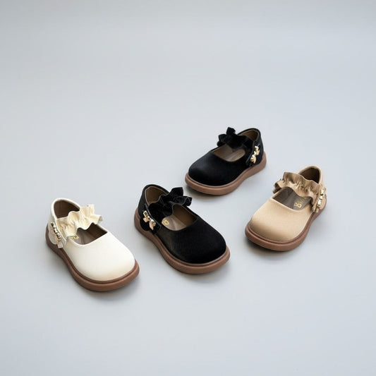 حذاء بناتي أنيق مع فيونكة وجلد ناعم - مناسب للمدرسة والمناسبات