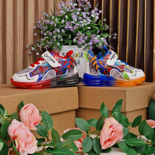 حذاء سبايدرمان للأولاد المضيء LED - ربيع وخريف 2025 حذاء رياضي من الجلد الناعم بنعل مضيء للأطفال