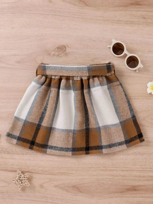 Checkered Charm: Girls' Belted Wool-Blend Skirt