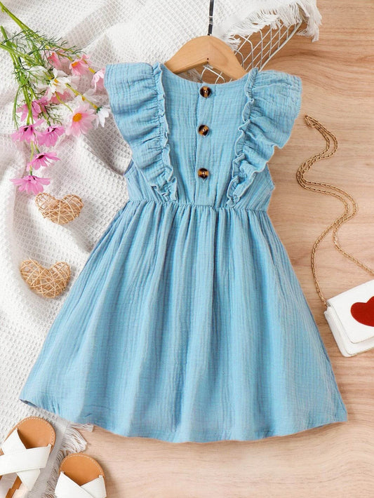 Charming Blossom: Young Girl's Ruffle Trim Bow Front Dress