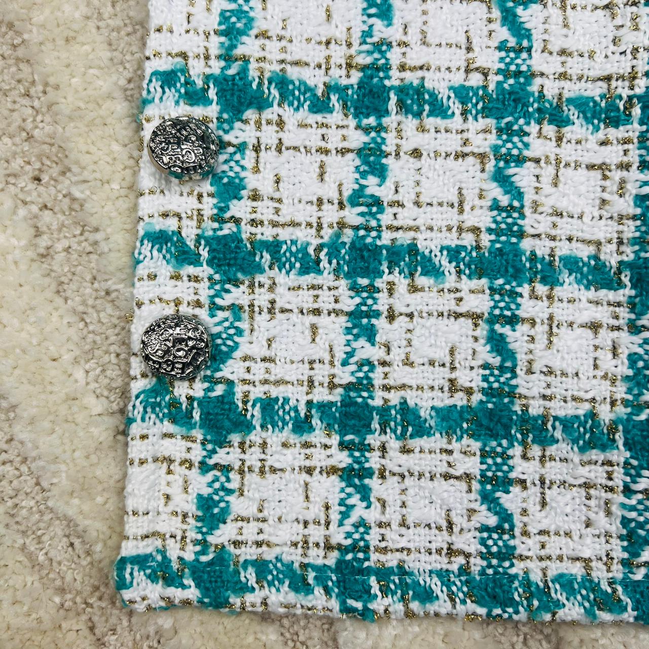 3-Piece Coordinated Set: Includes a fitted black long-sleeve top, plaid skirt, and matching plaid jacket