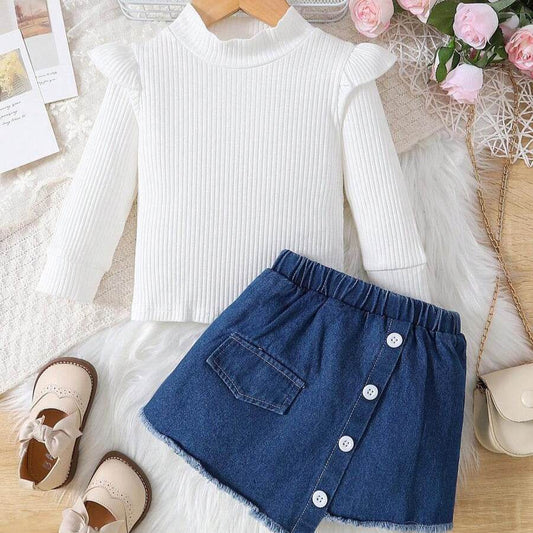 Ensemble stylé pour fille - t-shirt à volants et jupe en jean tendance ✨💙