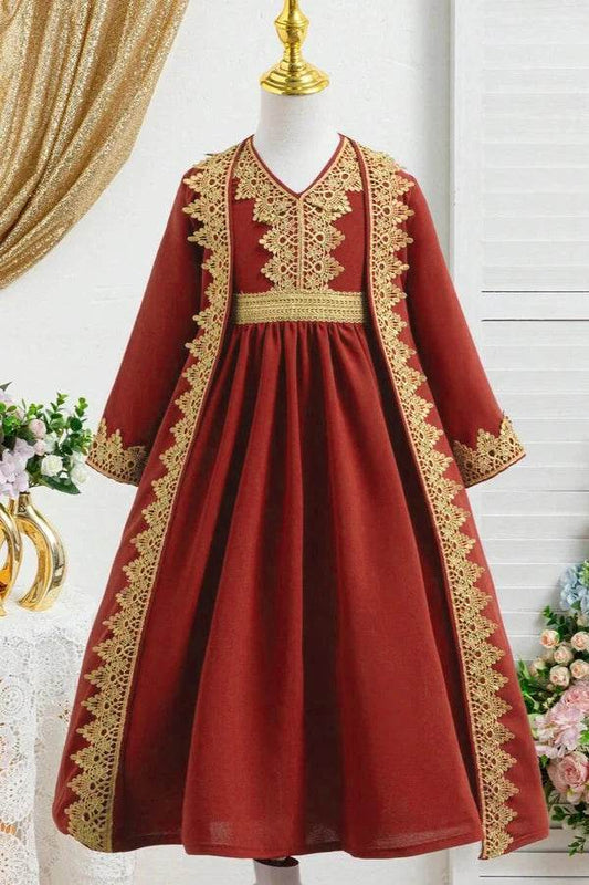 Robe de luxe pour fille au design classique et élégant avec broderie dorée