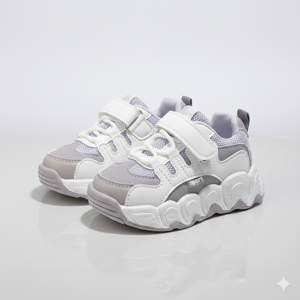 Offrez à votre enfant le parfait équilibre entre confort, sécurité et style avec ces baskets sport tendance à semelles épaisses. Conçues pour les enfants actifs, ces chaussures allient légèreté et résistance pour un maintien optimal des petits pieds tout au long de la journée. L'empeigne en mesh respirant garde les pieds au frais, tandis que la semelle épaisse et amortissante absorbe les chocs et assure une excellente stabilité. Grâce à leurs brides auto-agrippantes, elles sont faciles à enfiler et parfaites pour l'école, les jeux et toutes les aventures du quotidien.
