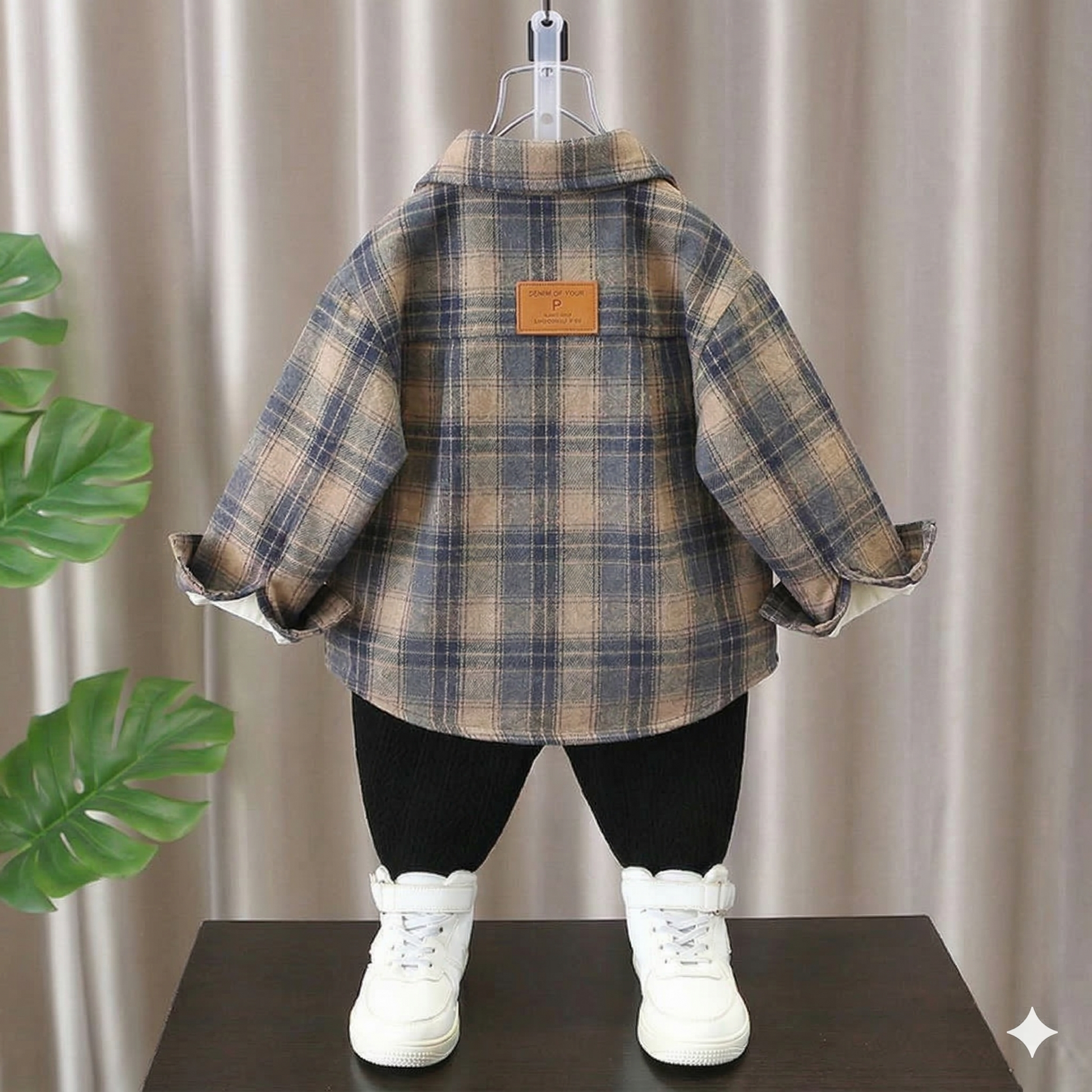 ✅ إطلالة أنيقة كاملة: احصل على قميص فلانيل كلاسيكي بنقشة مربعات، وقميص تي شيرت مريح برسومات، وبنطال رياضي عصري للحصول على طقم متكامل وجاهز للارتداء.