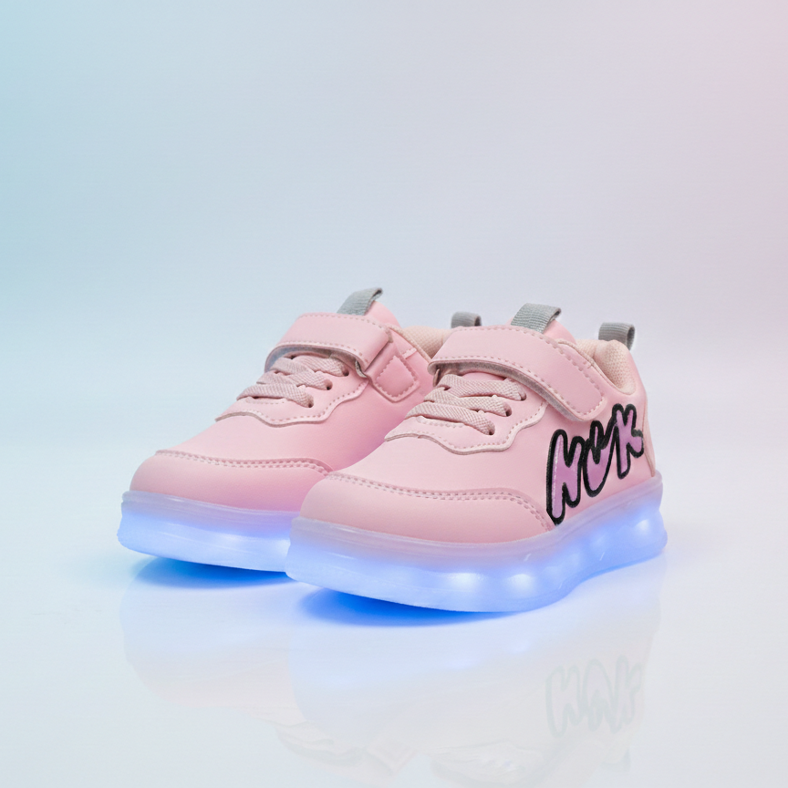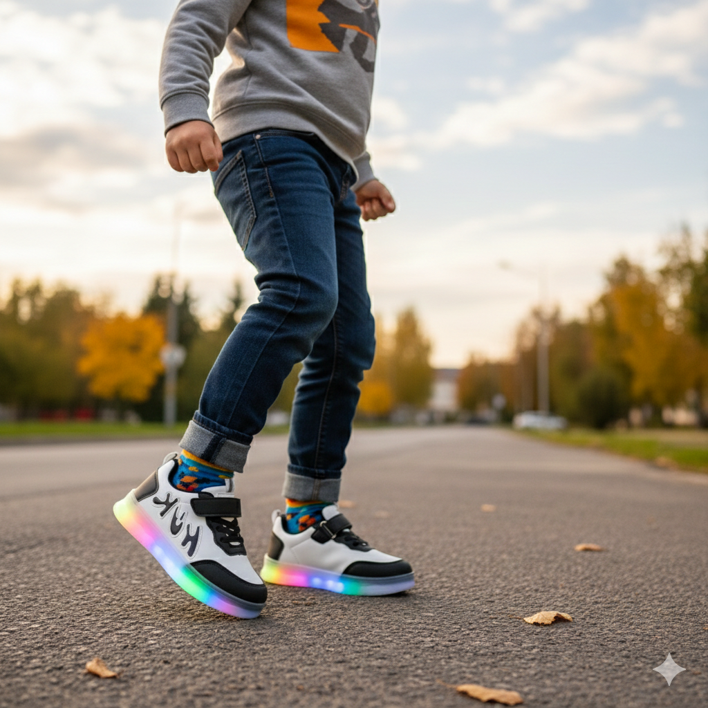 يجمع حذاء الرياضي للأطفال بين الأناقة المرحة والراحة اليومية. يتميز بتصميم علوي ناعم، وحزام لاصق آمن، ونعل شفاف مضيء بتقنية LED، مما يجعله مثاليًا للمدرسة والنزهات وأوقات اللعب. متوفر بألوان محايدة جذابة، ليسهل تنسيقه مع أي زي، مع إضفاء متعة الخطوات المضيئة على الأطفال.