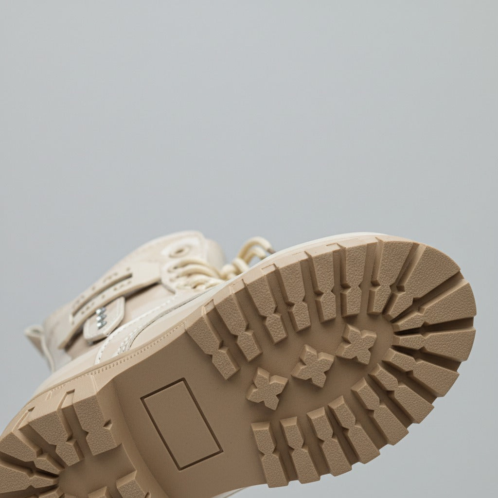 أحذية شتوية أنيقة للبنات - أحذية جلدية دافئة مانعة للانزلاق بنعل سميك