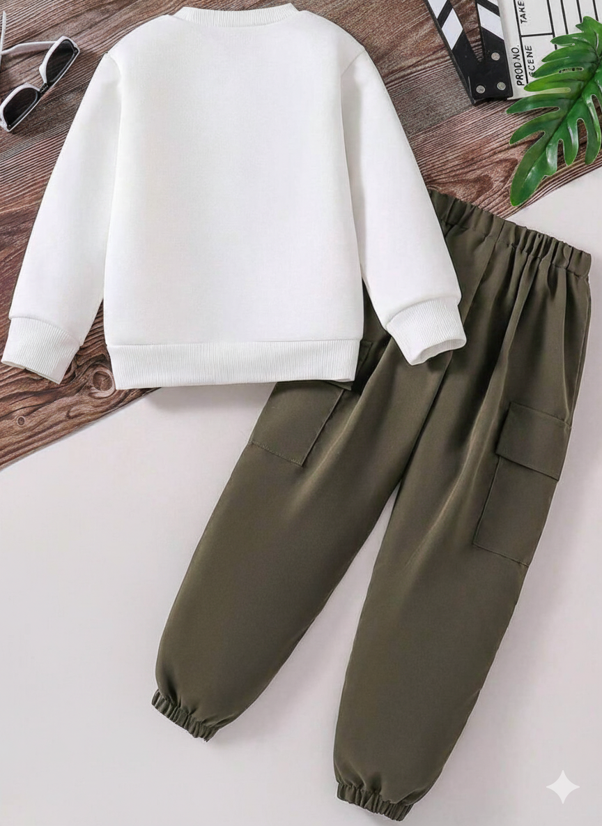 امنح طفلك المزيج المثالي من الأناقة والراحة مع هذا الزي العصري للأولاد! صُمم هذا الطقم للأطفال النشطين، ويتميز بما يلي: